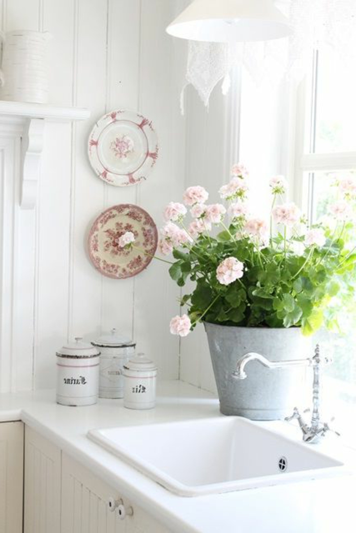 Shabby chic küche grüne pflanzen neben dem fenster