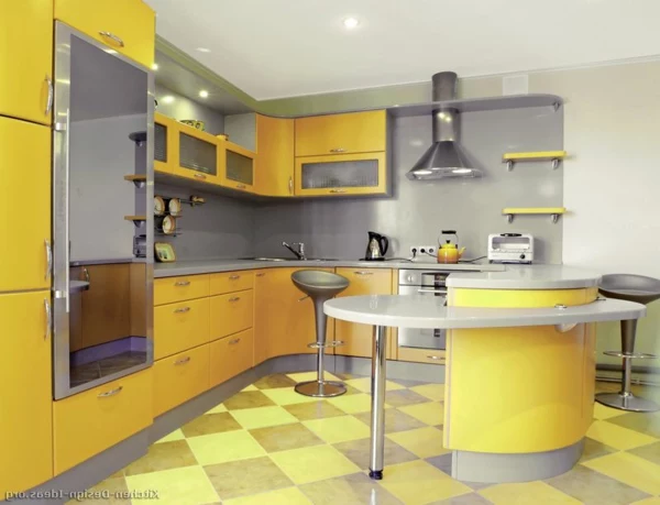 Attraktive-Küchengestaltung-Gelb-und-Grau-Ideen