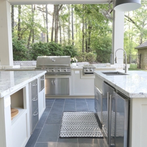 - Ein schmaler, ausziehbarer Apotherschrank für Öle und Essigflaschen neben dem Kochfeld.