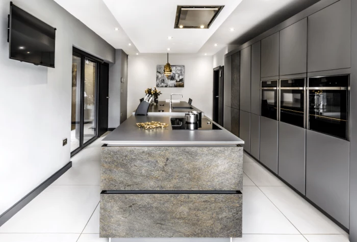 Quarzkomposit: Marken wie Silestone bieten extrem robuste, porenfreie und pflegeleichte Oberflächen in unzähligen Designs, von Marmor- bis Betonoptik. Ideal für Familien und alle, die es unkompliziert mögen.