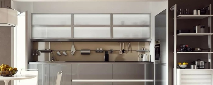 Glastüren können einen Raum optisch auflockern und Tiefe schaffen, besonders in kleinen Küchen. Klarglas setzt voraus, dass dahinter stets perfektes „Insta-Chaos“ herrscht. Eine clevere Alternative ist satiniertes oder geriffeltes Glas: Es verbirgt den Inhalt, lässt aber das Licht durchscheinen und schafft eine elegante, leichtere Optik als eine massive Holzfront.