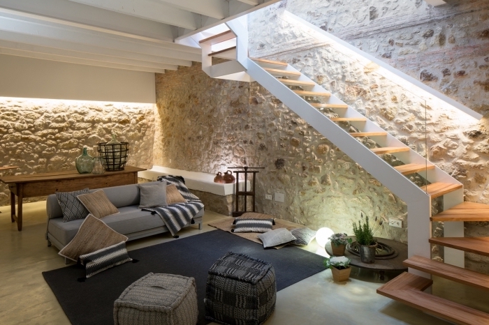 Design wohnzimmer kreative gestaltung flintstones inspired dekkorationen in authentischem stil steinwände keller in wohnzimmer verwandeln
