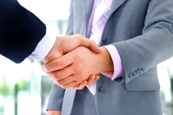 zwei Geschäftspartner verhandeln erfolgreich