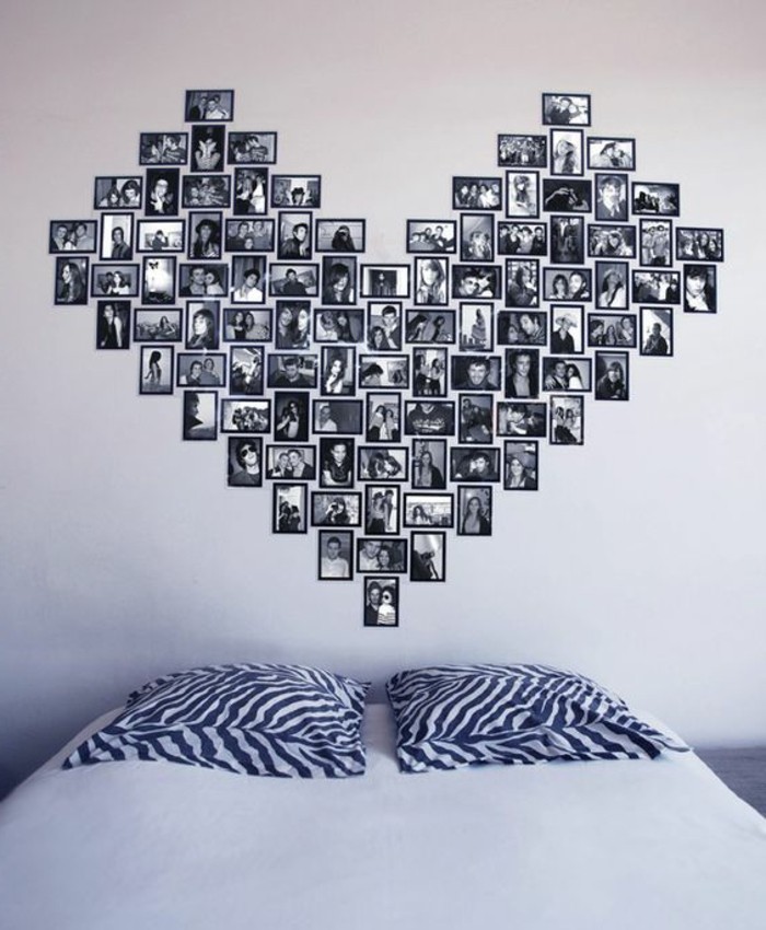 Deko ideen schlafzimmer herz aus fotos bett kissen