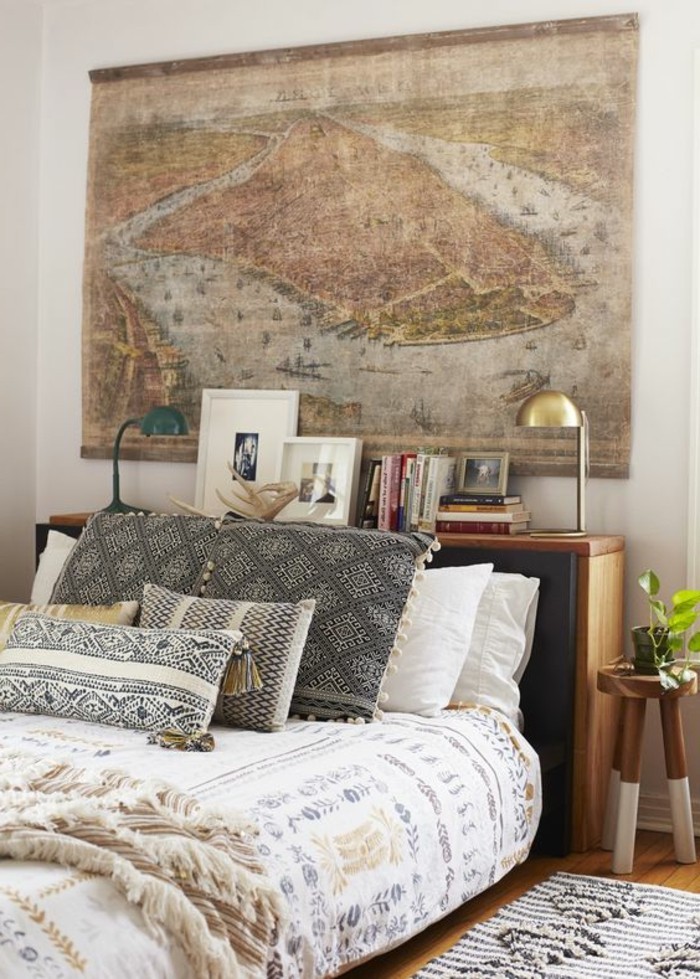 Deko schlafzimmer bett retro stil karte kissen bilder