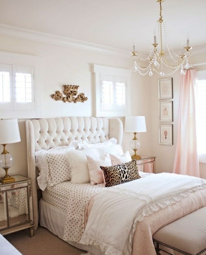 Deko tipps weisses bett goldenes ornament nachtschraenke