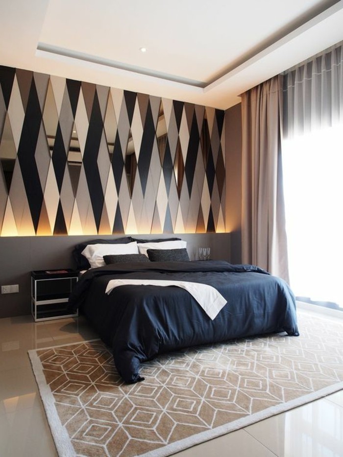 Schlafzimmer dekorieren wand mit mosaik und beleuchtung