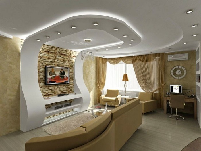 Auffällige deckenverkleidung modernes aussehen vom wohnzimmer