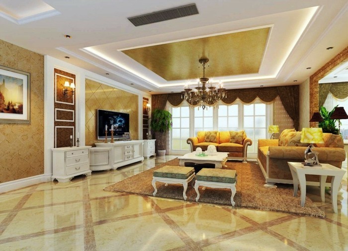 Einmaliges modell wohnzimmer goldene nuancen zimmerdecke