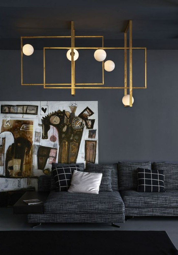 Graues wohnzimmer sehr modern schöne deckenleuchten