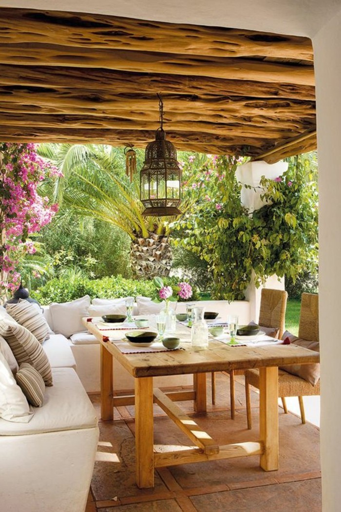 Hölzerne zimmerdecke wunderschöne terrasse mit einem großen sofa
