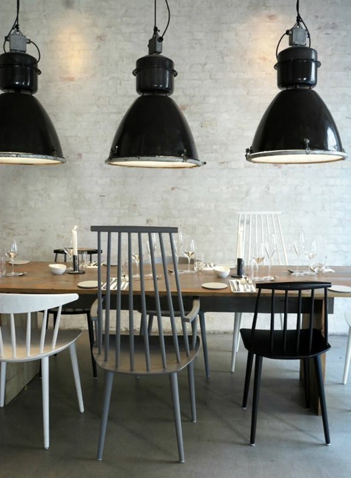 Interessante deckengestaltung im wohnzimmer hängende schwarze lampen