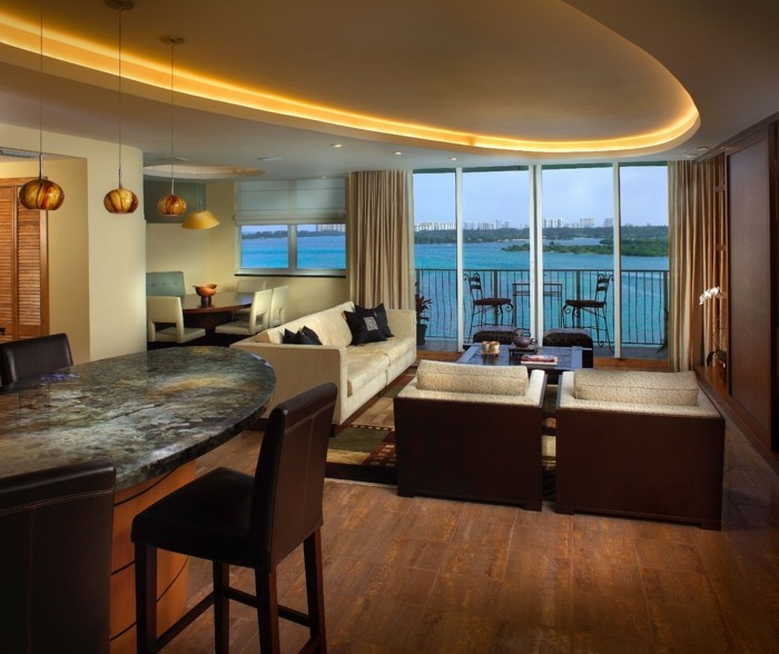 Effektvolle deckengestaltung wunderschönes wohnzimmer design große fenster