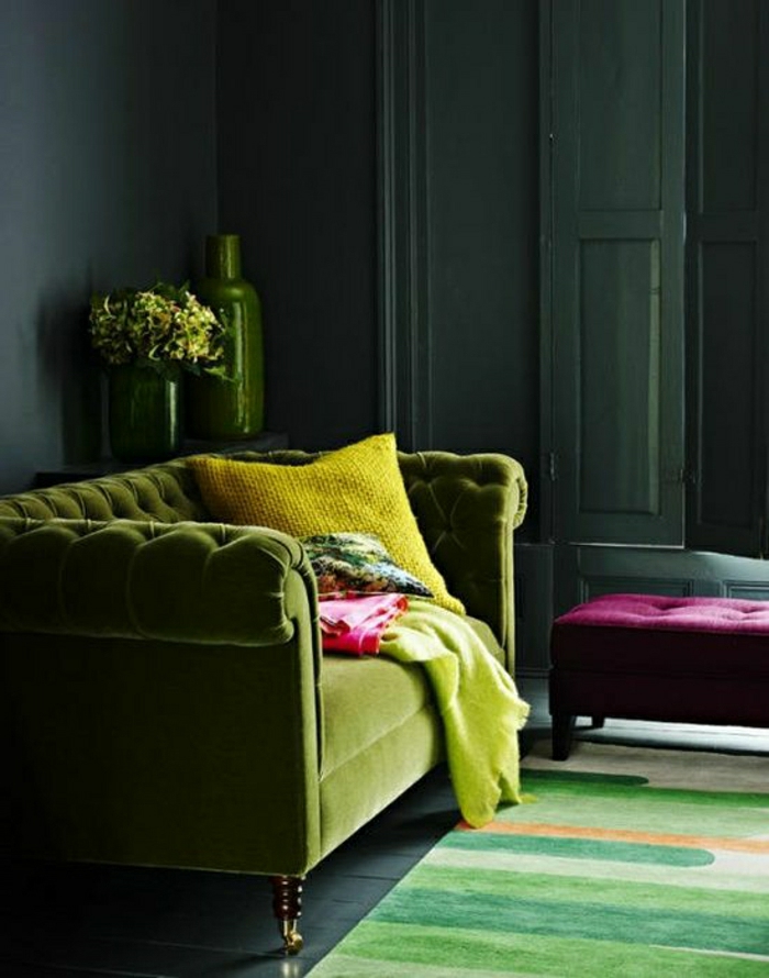 Grünes Interieur Boho Chic Stil wunderschönes Chesterfield Sofa resized resized