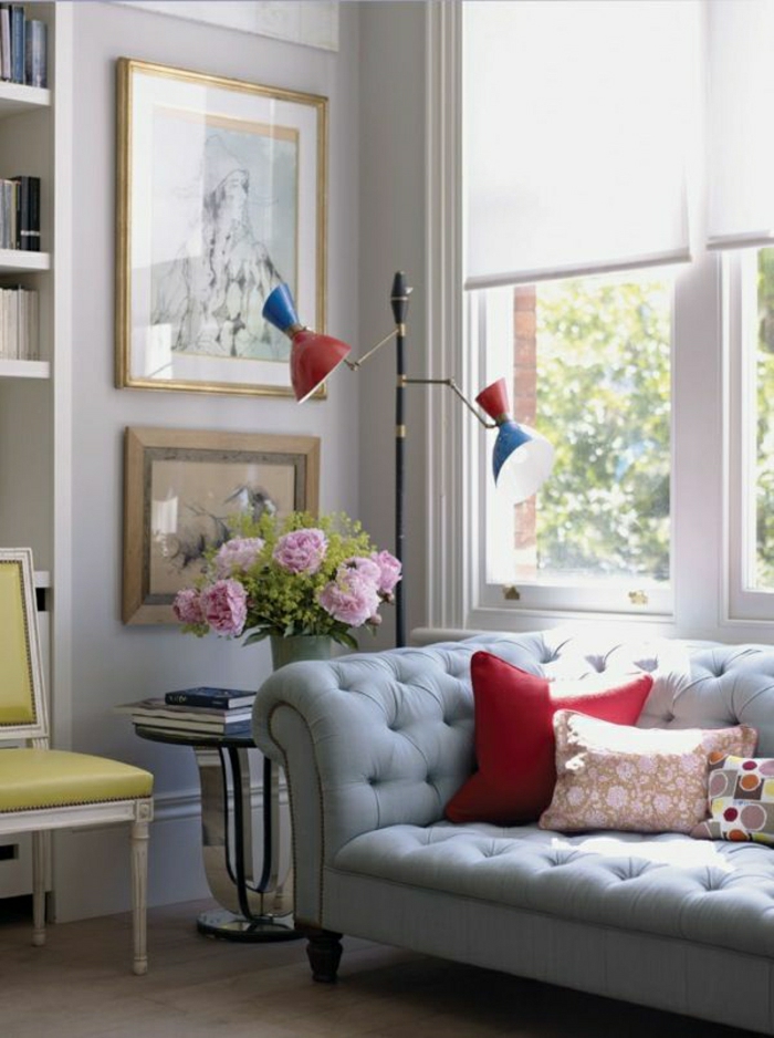 Hellblauer Chesterfield süße Kissen Couchtisch Metall Pfingstrosen gelber Stuhl resized resized
