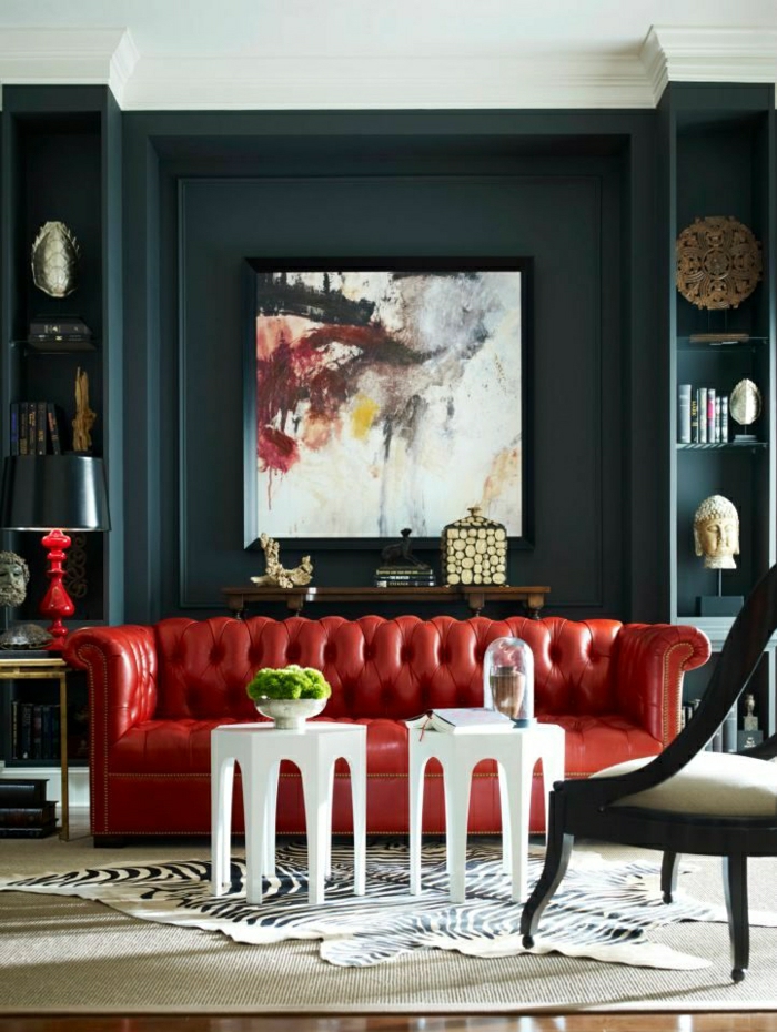 Rote Chesterfield Couch weiße Couchtische Tierhaut abstraktes Bild resized resized