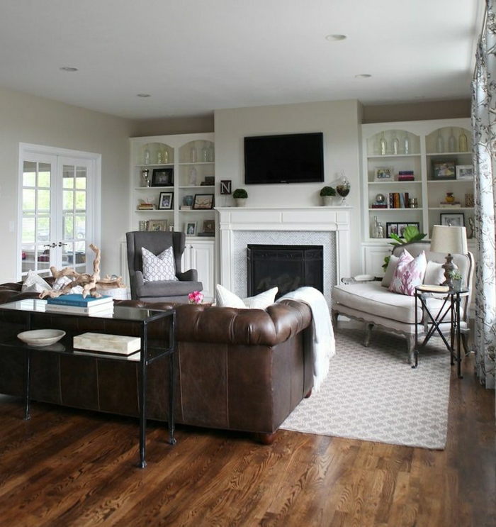 Weißes Wohnzimmer braunes Leder Chesterfield Sofa resized resized
