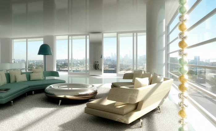 Luxus wohnzimmer attraktive weiße gestaltung gläserne wände
