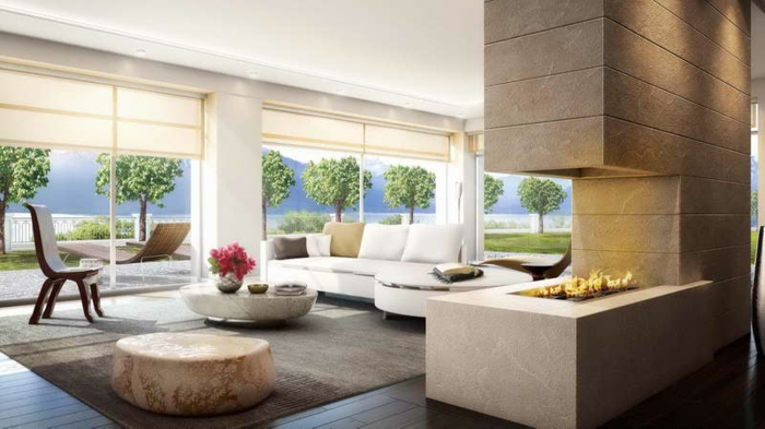 Luxus wohnzimmer moderne gestaltung gläserne wände