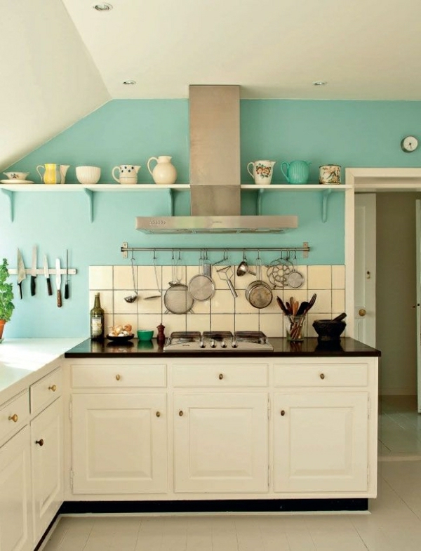 Die Wandfarbe Türkis ist eine Trendfarbe, die mit sehr positiven Assoziationen verbuden ist. Sie bringt uns Freude und Ruhe und passt gut zu jedem Zimmer.
