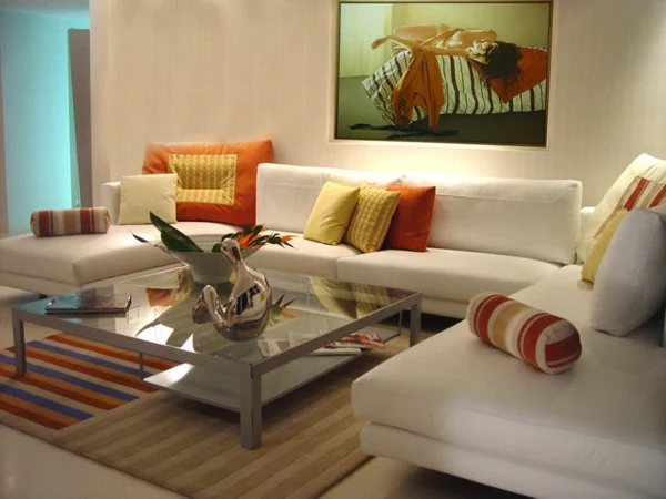 - Für die Familie: Brauchst du viel Platz am Boden zum Toben und Spielen? Dann ist ein großer, weicher Teppich viel wichtiger als ein schicker Couchtisch mit Glaselementen. Die Möbel müssen was aushalten und die Stoffe sollten am besten fleckenunempfindlich und abziehbar sein.