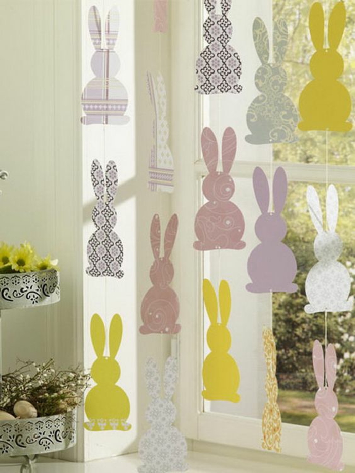 Wohnzimmer deko fensterdeko bastelpapier gelb musterpapier form hase kaninchen wald[bersicht